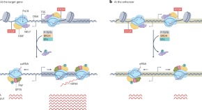 In this Perspective, the authors propose that transcription at enhancers and transcription at their cognate genes are linked, forming the basis of enhancer–gene communication. This model represents a synthesis of recent key discoveries.