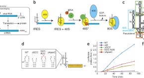Studies of the hepatitis C virus internal ribosome entry site (IRES) mechanism have focused on how IRES assembles an 80S ribosome at the start codon. Structural and functional analyses demonstrate that mutations of an IRES domain that docks in the 40S subunit's decoding groove cause conformational changes and that the mutated domain decreases IRES activity by inhibiting ribosome translocation and, thereby, translation elongation.
