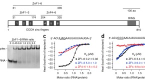A new crystal structure of mouse Unkempt, a translational regulator of neuronal cell morphology, reveals how its two zinc-finger-triplet clusters recognize distinct cognate RNA sites.