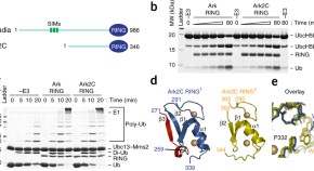 Structural and biochemistry analyses reveal that the monomeric RING domains of E3 ligases Arkadia and Ark2C bind free ubiquitin with high affinity, and the RING–Ub complex stabilizes donor ubiquitin conjugated to E2, thus promoting transfer.