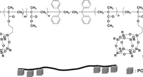 The interfacial dynamics of the segment of poly(methyl methacrylate) (PMMA) terminated with elemental blocks containing polyhedral oligomeric silsesquioxane (POSS), namely PPMP (PMAPOSS-b-PMMA-b-PMAPOSS), was much slower than that of the conventional PMMA. The number of platelets adhered to the PPMP film was dependent on the pre-immersion time in phosphate-buffered saline before the platelet seeding, and these results could be explained in terms of the aggregation states of water at the interface.