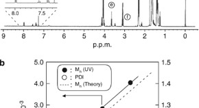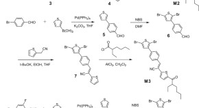 Mono- and bis-stannylation at the chain ends of regioregular poly(3-hexylthiophene) (P3HT) were conducted by post-functionalization of P3HT synthesized through Ni-catalyzed Grignard metathesis polymerization. Lithiation of P3HT with s-BuLi and subsequent stannylation with Me3SnCl led to the formation of bis-stannylated P3HT. The highest conversion of 81% was achieved with the additive N,N,N′,N′-tetramethylethylenediamine (TMEDA), which could enhance the stability of the lithiated compound. On the other hand, mono-stannylated P3HT was synthesized without contamination by bis-stannylated P3HT through successive reactions with a Grignard reagent and Me3SnCl.