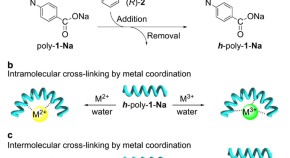 A versatile method for stabilizing an excess-handed helical polyisocyanide induced and memorized in the polymer backbone has been developed using divalent and trivalent metal ions that can coordinate to the pendant carboxylate residues in the polyisocyanide, thereby forming a noncovalently cross-linked network through intra- and/or intermolecular coordination. Among the metal ions investigated, the lanthanide ions were proved to be the most efficient and remarkably improved the thermal stability of the helical polyisocyanide in solution as well as in a gel.