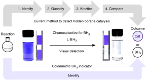 Hidden catalysis plagues catalyst development and occurs when an impurity or species generated in situ facilitates the reaction instead of the intended catalyst. Current methods to identify hidden catalysis require time-consuming, labour-intensive mechanistic analyses, so limiting widespread use. A colorimetric indicator has been developed that enables rapid, visual detection of hidden borane catalysis.