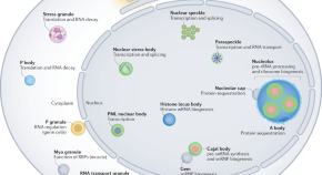 Membraneless organelles (MLOs) contribute to intracellular compartmentalization and to various cellular processes. This Review provides a guide to MLOs involved in gene regulation in eukaryotes, discussing their assembly, structure, roles in transcription, RNA processing and translation — particularly in stress conditions — and their disease relevance.