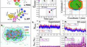 Transferring coacervates based on polydiallyldimethylammonium chloride and adenosine triphosphate into deionized water has been experimentally demonstrated to stabilize them against coalescence. Here, molecular modeling and simulations are used to study the coacervation and stabilization of the relevant polyelectrolyte mixture, systematically investigating the structural and dynamic properties that lead to stability.