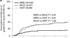 We report a paired-matched analysis of HLA-mismatched unrelated donor transplantation (MMUD, n = 73) versus HLA-haploidentical transplantation (n = 146) in AML patients with active disease at transplantation. Two-year leukemia-free survival and overall survival was 42% and 46% in MMUD recipients, respectively, versus 26% (P = 0.1) and 28% (P = 0.061) in Haplo-patients.