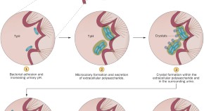 Struvite stones are a subset of kidney stones that form as a result of UTI with urease-producing pathogens, and can cause significant morbidity and mortality if left untreated or treated inadequately. Here, we provide an overview of our current understanding of the microbiology, pathogenesis, treatment, and prevention of struvite stones.