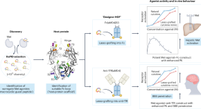 Cytokine receptor agonists can be designed with longer half-lives in circulation and with enhanced penetration of the blood–brain barrier by genetically grafting macrocyclic peptides into the structural loops of fragment crystallizable regions.