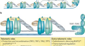 Telomeres protect chromosomes from degradation and are therefore essential for ensuring genomic stability. These heterochromatic structures are bound by the shelterin complex, which regulates the activity of telomerase at the ends of chromosomes. This Review analyses the role of these telomeric proteins in cancer and ageing through modulating telomere length and protection, as well as through their 'extracurriculum' activities as gene expression regulators by binding to non-telomeric sites.