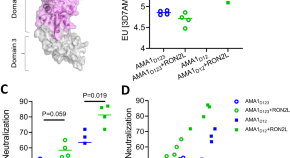 Here the authors use structure-based design to engineer a single component immunogen that mimics the malaria parasite AMA1-RON2 complex required for invasion of host cells, and show that it elicits a potent strain-transcending antibody response in rats.