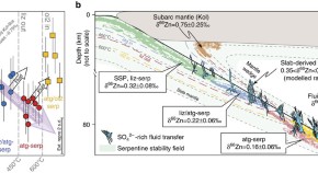 During subduction, fluids are released into the mantle wedge, but the exact compositions of these fluids are unclear. Ponset al. by analysing zinc isotopes from serpentinite provide evidence that oxidized, sulphate rich fluids are released to the mantle wedge during subduction.