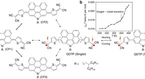 • Engineering a coupling between magnetic molecules and conducting materials at room temperature could help the development of spintronic devices. Loh et al. show that the spin state of QDTP molecules deposited on graphene and MoS2 couples to their electronic structure, affecting magnetotransport.