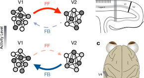 • How cortical areas interact via feedforward and feedback signaling remains unclear. Here, the authors recorded from V1 and V2/V4 in macaque visual cortex and found that feedforward and feedback interactions vary with stimulus drive and involve different neuronal population activity patterns.