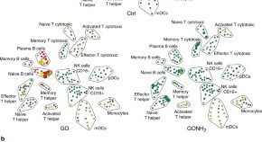 Understanding the interaction of nanomaterials and immune cells at the biomolecular level is of great significance in therapeutic applications. Here, the authors investigated the interaction of graphene oxide nanomaterials and several immune cell subpopulations using single-cell mass cytometry and genome-wide transcriptome analysis.