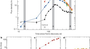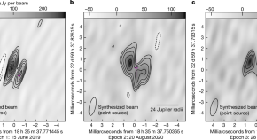 High-resolution radio imaging of the γ-ray-emitting nova V959 Mon, hosted by a white dwarf and its binary companion, shows that gaseous ejecta are expelled along the poles as a wind from the white dwarf, that denser material drifts out along the equatorial plane, propelled by orbital motion, and that γ-ray production occurs at the interface between these polar and equatorial regions.