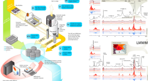 High-resolution radio imaging of the γ-ray-emitting nova V959 Mon, hosted by a white dwarf and its binary companion, shows that gaseous ejecta are expelled along the poles as a wind from the white dwarf, that denser material drifts out along the equatorial plane, propelled by orbital motion, and that γ-ray production occurs at the interface between these polar and equatorial regions.