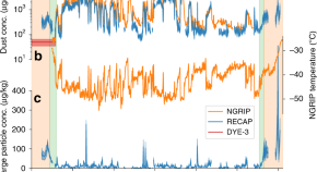 Accurate measurements of the past extent of the Greenland ice sheet are crucial to understand its response to changing climate conditions. Here, the authors present a dust record from an ice core from the east coast of Greenland to provide detailed time constraints on ice sheet advance and retreat over the last interglacials.