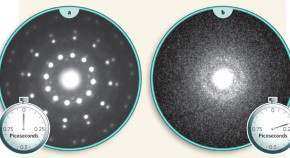 • By cunningly diffracting X-rays twice from an exploding nanometre-scale sphere, holographic images can be made of a tiny system evolving at lightning speed. The technique could be used to picture atomic dynamics.