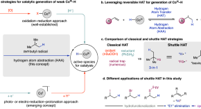 Hydrogen atom transfer (HAT) from a metal-hydride is a reliable and powerful method for functionalizing unsaturated C–C bonds in organic synthesis. Herein, the authors show that reverse process of HAT to an alkene can be leveraged to generate catalytically active Co–H species in an application of shuttle catalysis coined shuttle HAT.