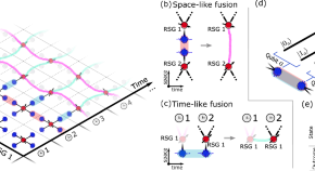 • Fusion-based quantum computing relies on small entangled resource states that are then fused together probabilistically via linear optical circuits. Here, the authors demonstrate temporal fusion—where resource states generated at different times by the same quantum emitter are fused together—using a spin-photon interface in a quantum dot embedded in a photonic crystal waveguide.