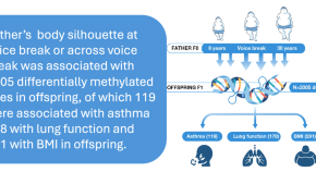 Epigenome association study of father’s preconception body silhouette with offspring DNA methylation, providing mechanistic insight into how epigenetic inheritance impacts offspring obesity, asthma and lung function.