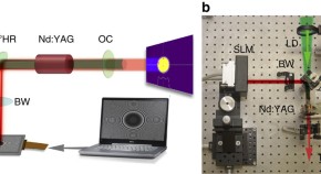 • Customizing the output from a laser is typically done by appropriate optical elements. Here Ngcobo et al.show that a digitally controlled holographic mirror placed within the laser cavity can be used to dynamically select the desired laser output modes.