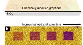 Breaking chemical bonds with mechanical force can be a useful route to modify chemical species, but studying the process in detail can be challenging. Here, the authors use atomic force microscopy to apply pressure and monitor bond cleavage on chemically modified graphene.