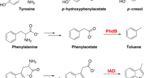 • The C2 sulfonates taurine and isethionate are also present in the anaerobic mammalian gut, where they are converted into toxic H2S by sulfate and sulfite-reducing bacteria. Here the authors characterise the O2-sensitive enzyme IseG that catalyzes the C-S bond cleavage of isethionate and show that IseG also plays a key role in converting taurine into H2S in Bilophila wadsworthia.