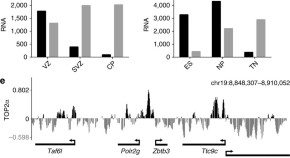 Topoisomerase 2α (Top2α) has essential roles during DNA replication, whereas its isoform Top2β is implicated in gene expression. Thakurela et al.show that Top2α is also required for stem-cell transcriptome regulation and primes developmental genes for activation by Top2β upon terminal differentiation.