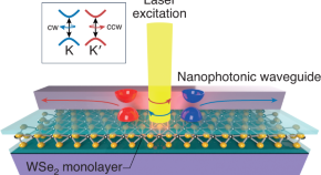 The local polarization of light in nanophotonic waveguides changes with the light’s direction of propagation. By electrically controlling the polarization of optically created waveguide-coupled excitons in a two-dimensional semiconductor, researchers demonstrate voltage-controlled routing of photons in an integrated nanophotonic device.