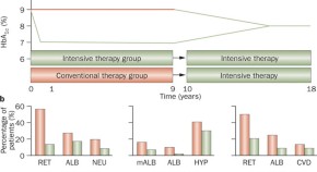 Chronic hyperglycemia is associated with the presence and evolution of diabetic complications in type 1 and type 2 diabetes. Intensive glycemic control can have beneficial effects on such complications, particularly diabetic nephropathy. This Review discusses the phenomenon of 'metabolic memory', in which the beneficial effects of intensive glycemic control persist after a return to more usual (often worse) glycemic control. This phenomenon is not well understood, but preliminary studies indicate that biochemical mechanisms such as advanced glycation and molecular pathways involving epigenetic events might have a role.