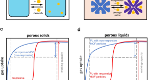 Responsive liquid systems which exhibit a breathing behaviour and show step-shaped gas sorption isotherms, akin to the distinct oxygen saturation curve of haemoglobin in blood have been developed. Their breathing behaviour upon sorption of industrially relevant gases is demonstrated.
