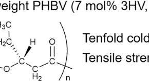 We investigated the biosynthesis and properties of poly(3-hydroxybutyrate-co-3-hydroxyvalerate) (PHBV) produced by Haloferax mediterranei from glucose. Size-exclusion chromatography revealed that PHBV produced by H. mediterranei in flask cultures had a weight-average molecular weight of 4.7 × 106 g/mol, demonstrating production of ultrahigh-molecular-weight (UHMW) PHBV. The UHMW-PHBV (7 mol% 3-hydroxyvalerate, Mw = 4.4 × 106 g/mol) obtained by jar fermenter cultivation was used to produce tenfold cold-drawn films with a tensile strength of 258.7 MPa. This suggests that UHMW-PHBV has a potential for practical, strong films.