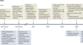 Propelled by a growing understanding of nasopharyngeal carcinoma pathogenesis through elucidation of its genomic and immune landscape, therapy has progressed from radiotherapy alone to combined chemotherapy and immunotherapy. This Clinical Outlook focuses on recent milestones and future directions for patients with nasopharyngeal carcinoma.