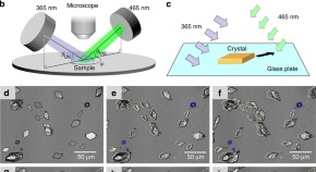 Creating the motion of nanosized or microsized objects is essential for building robots at small scales. Here, Uchida et al.move photoresponsive organic crystals on a glass substrate using two lamps, which crystallize and melt the crystal front and the rear, respectively, to generate the moving force.
