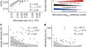An analysis of 24 coral reef viromes challenges the view that lytic phage are believed to predominate when the density of their hosts increase and shows instead that lysogeny is more important at high host densities; the authors also show that this model is consistent with predator–prey dynamics in a range of other ecosystems, such as animal-associated, sediment and soil systems.