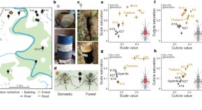 The mosquito Aedes aegypti includes two subspecies, one of which shows a preference for biting humans, whereas the other prefers to bite non-human animals; genetic analysis reveals that changes in the mosquito odorant receptor Or4 contribute to the behavioural difference—in human-preferring mosquitoes, Or4 is more highly expressed and more sensitive to sulcatone, a compound present at high levels in human odour.