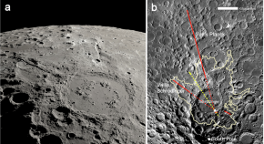 The Schrödinger impact event carved two canyons on the moon comparable in size to the Grand Canyon of North America. The directions of those canyons imply little debris covers the > 4-billion-year-old units that will be explored by Artemis astronauts.