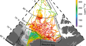 Ocean acidification has expanded in the western Arctic Ocean. Observations from the 1990s to 2010 show that aragonite saturation levels have decreased, with low saturation water deepening to 250 m and increasing in area more rapidly than seen in other oceans.