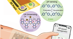 Smart devices for wound management combine biosensing with drug release. Here, a smart theranostic bandage is reported that can detect pH and uric acid levels and release antibiotics as necessary, all of which can be done remotely.