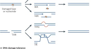 Monoubiquitylation and polyubiquitylation by Lys63-linked chains contribute to three different pathways related to the maintenance of genome integrity that are responsible for the processing of DNA double-strand breaks, the repair of interstrand cross links and the bypass of lesions during DNA replication.