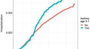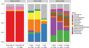 Colonization of commensal bacteria is thought to impact immune development, especially in the earliest years of life. Here, the authors show, by analyzing the development of the gut microbiome of 690 children, that microbial composition at the age of 1 year is associated with asthma diagnosed in the first 5 years of life.