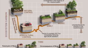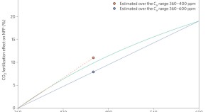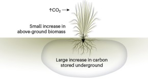 A global synthesis of experiments reveals that increases in plant biomass under conditions of elevated CO2 mean that plants need to mine the soil for nutrients, which decreases soil’s ability to store carbon. In forests, elevated CO2 generally seems to greatly increase plant biomass, but not soil carbon. In grasslands, by contrast, it causes small changes in biomass and large increases in soil carbon.