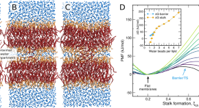 Fusion of cellular membranes begins with the formation of a stalk. Here, the authors develop a computationally efficient method for coarse-grained simulations of stalk formation and apply this approach to comprehensively analyse how stalk formation is influenced by the membrane lipid composition.