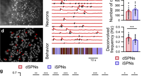 Inferring behavior encoding in the striatum is limited by divergent conclusions from correlative and causative experiments. Here, the authors show that behaviors are signaled by concomitant activations and inhibitions of direct and indirect pathway neurons.