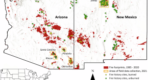 Contemporary fires are less frequent than those occurring in the past, but their severity results in higher tree mortality, based on a comparison of historical and contemporary fire severity using dendrochronology, satellite, and field-derived data from forests in Arizona and New Mexico, USA.
