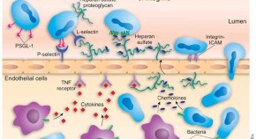 The importance of heparan sulphate, which is ubiquitously expressed as a proteoglycan, in leukocyte extravasation is often overlooked. Owing to the remarkable structural diversity of heparan sulphate proteoglycans, these molecules interact specifically with numerous proteins and participate in almost all stages of leukocyte extravasation.