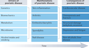 Psoriatic arthritis is a central feature of psoriatic disease, a systemic disorder that includes a range of musculoskeletal manifestations as well as features such as colitis, duodenitis, uveitis and metabolic syndrome. Evidence that psoriatic arthritis is distinct from rheumatoid arthritis and other spondyloarthropathies is outlined in this article.