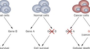 Synthetic lethality has emerged as a novel approach to treat cancer. Inhibitors of poly (ADP-ribose) polymerase, a target that has synthetic lethality withBRCAmutations, have already shown promise in clinical trials. The authors of this Review describe the clinical application of synthetic lethality for patients with breast cancer, and discuss biomarkers that can be used to select patients who will respond to this therapy. Other potential genes that could be involved in synthetic lethality, and are thus new targets, are also explored.